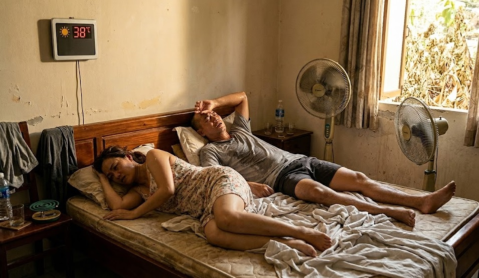 Hệ quả là bạn có thể cảm thấy mệt nhưng vẫn không buồn ngủ, hoặc nằm rất lâu mà không thể chìm vào giấc ngủ. Các nghiên cứu quốc tế cho thấy nhiệt độ ban đêm tăng có thể làm giảm thời lượng ngủ và khiến con người dễ thức giấc hơn, đặc biệt trong những đợt nắng nóng kéo dài.